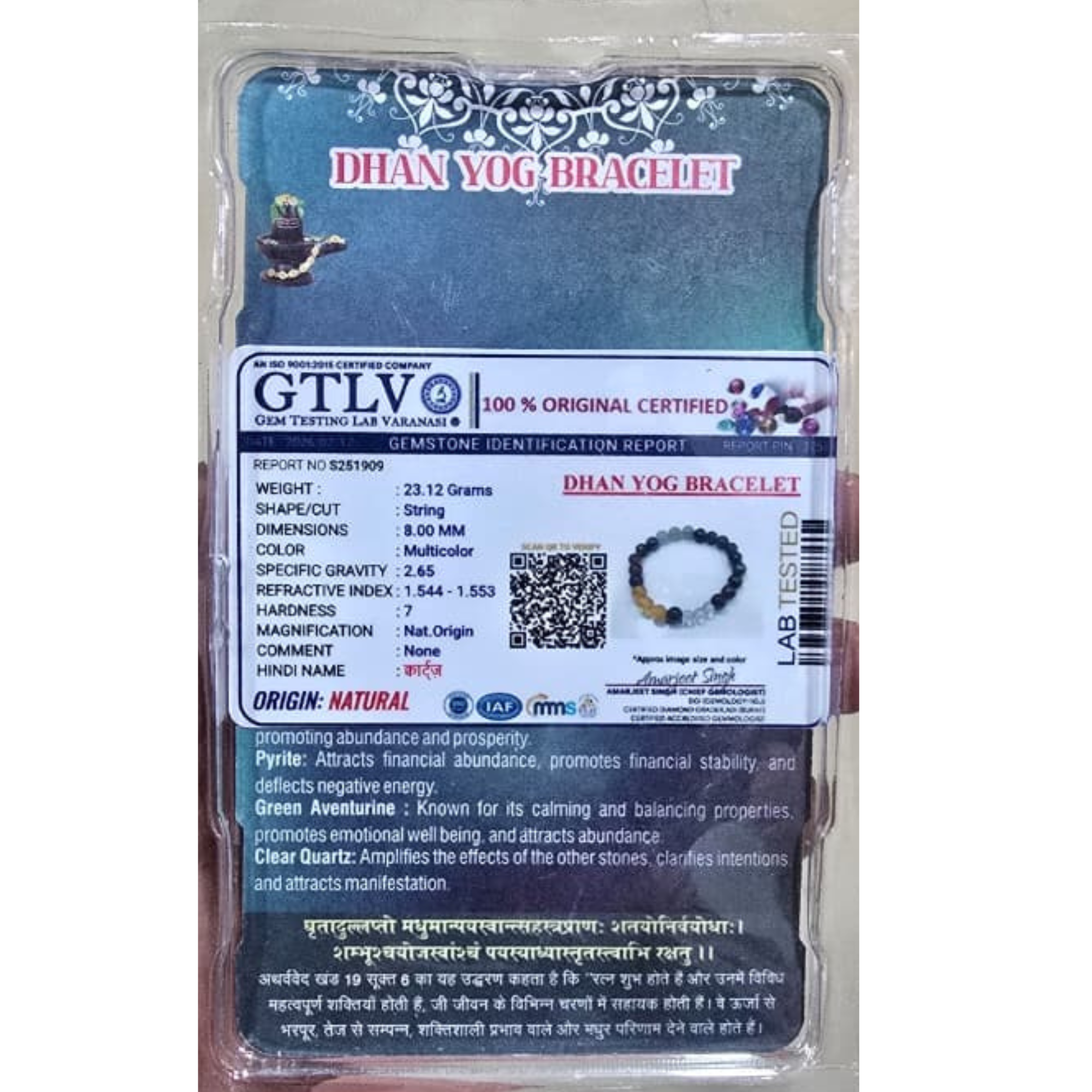 This bracelet includes carefully selected natural crystals that together create a strong “Dhan Yog Energy Field” to support wealth manifestation and positive opportunities.